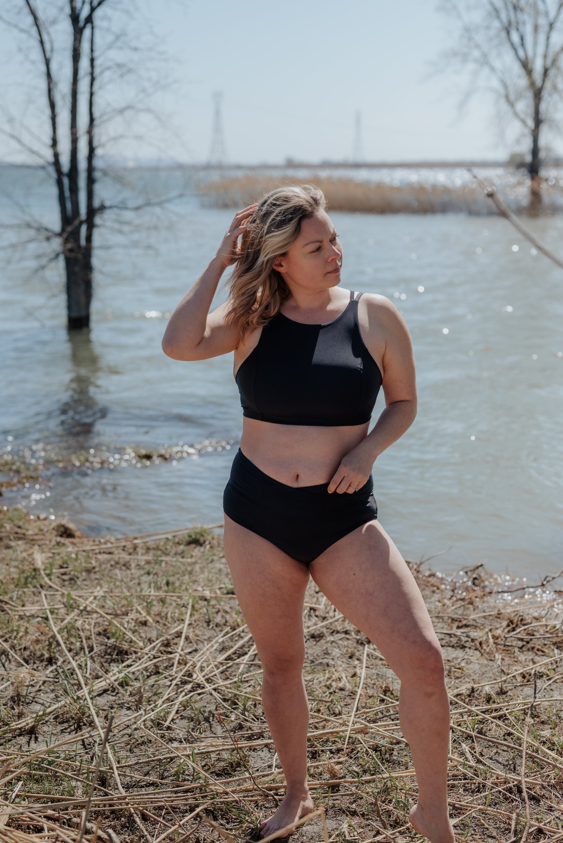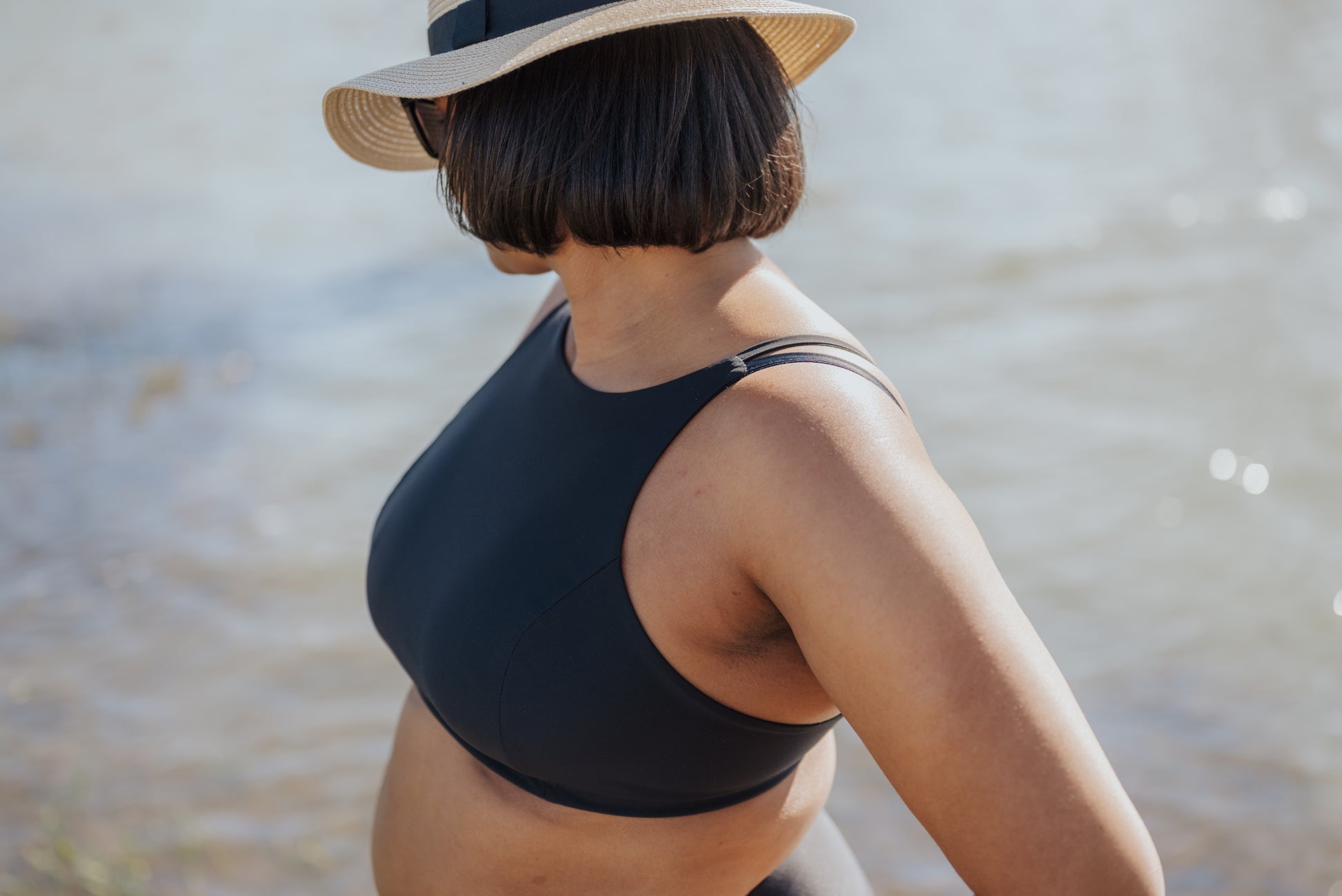 Ce maillot à encolure haute offre un maintien et une couverture totale. Il mettra l’emphase sur vos belles épaules. Pour aller jouer au volley-ball sur la plage ou pour sortir avec vos amies, ce maillot est prêt à toutes éventualités.